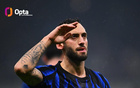 恰尔汗奥卢本赛季意甲7场已打入5球,与上赛季持平
